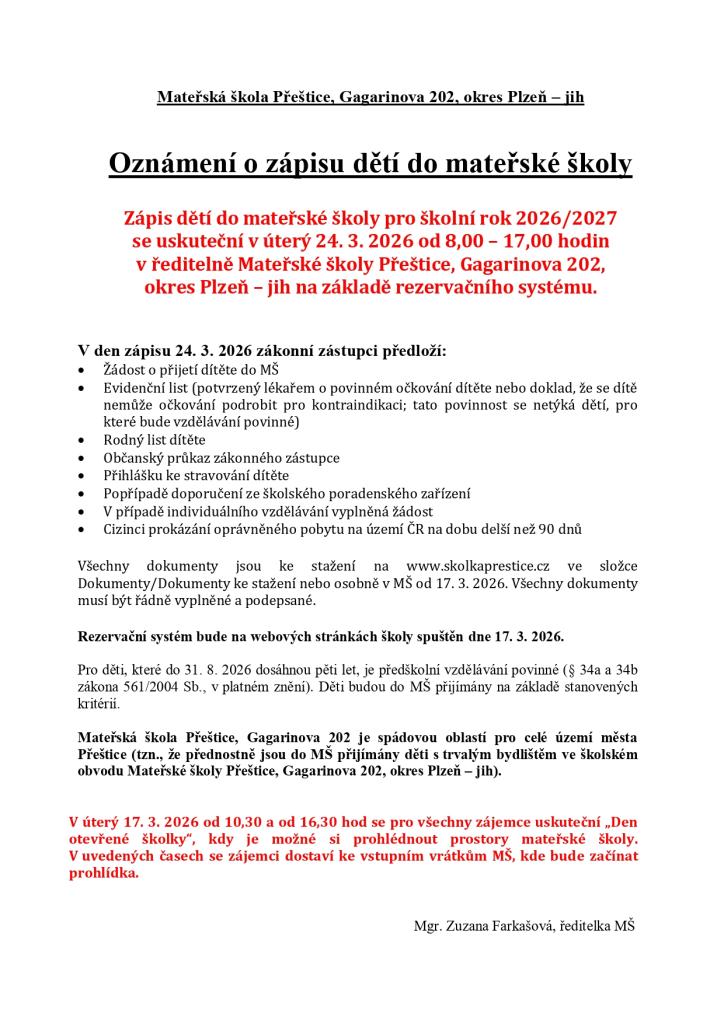 které bude oázou klidu a radosti ze vzájemného setkávání dětí, rodičů a všech zaměstnanců.