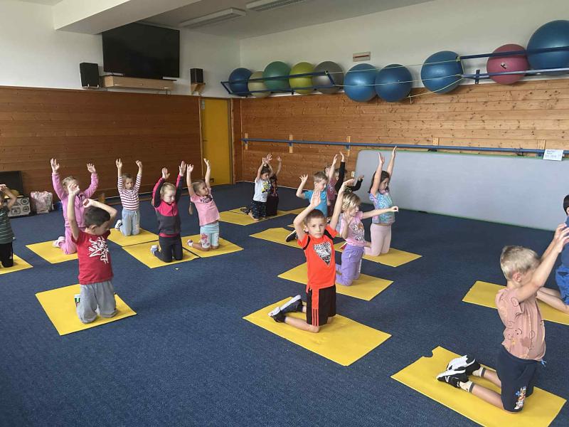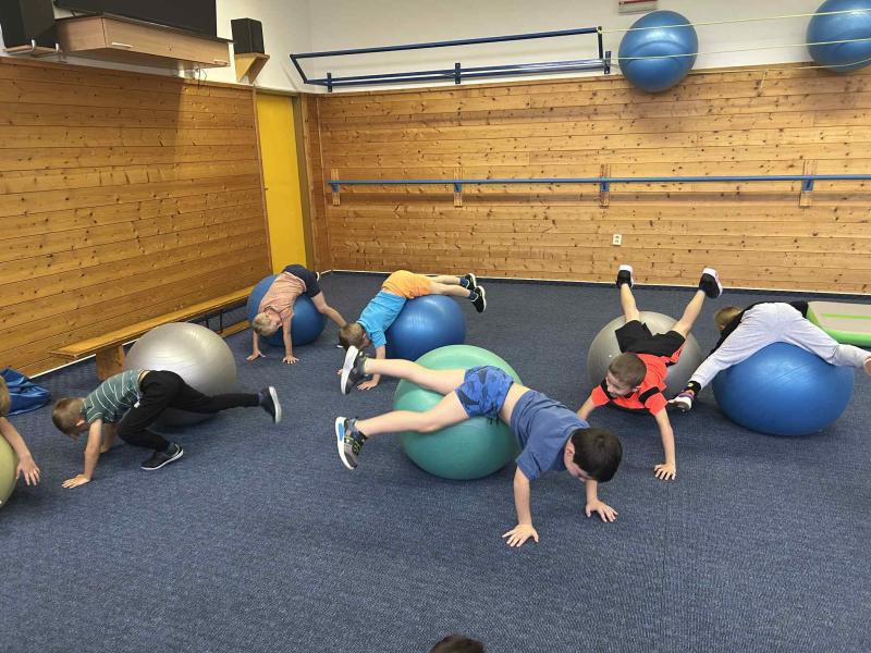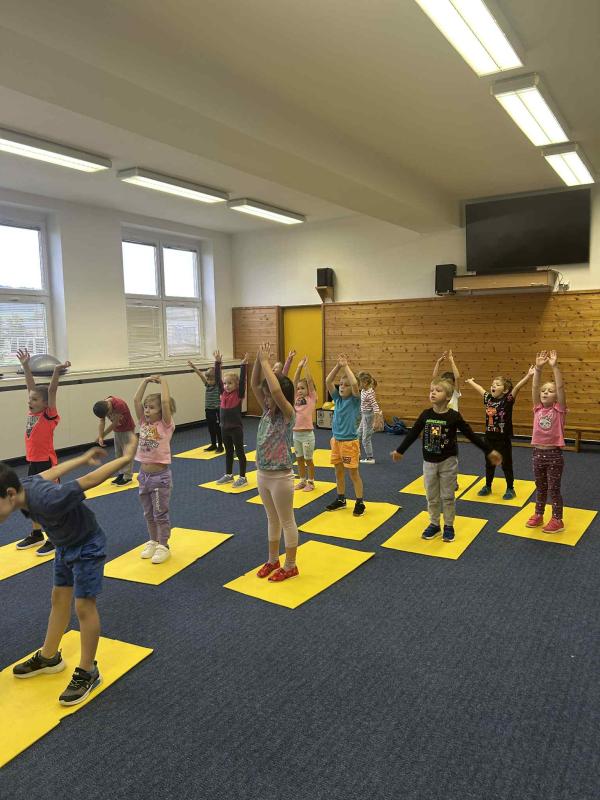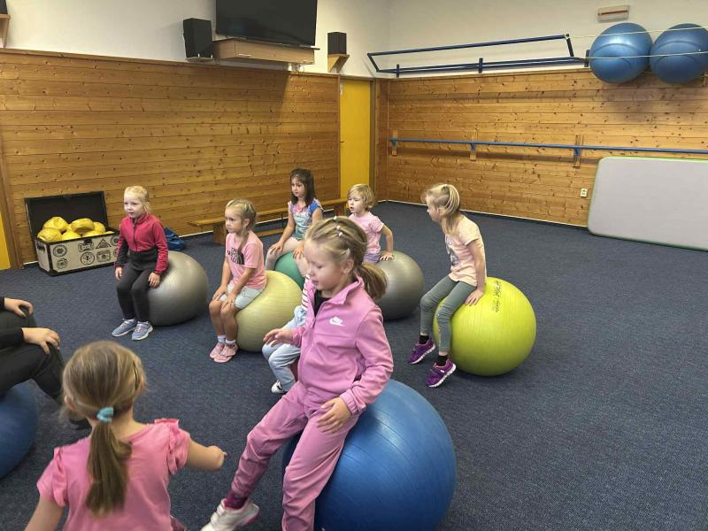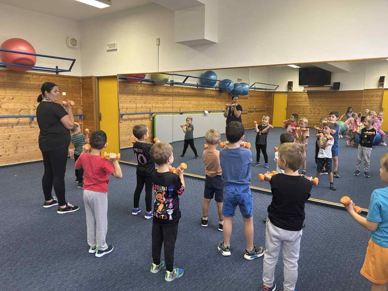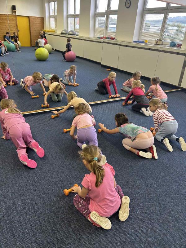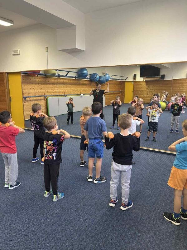 Tělocvik v ZŠ - Gymnastický sál - míče + činky - předškoláci III. třída